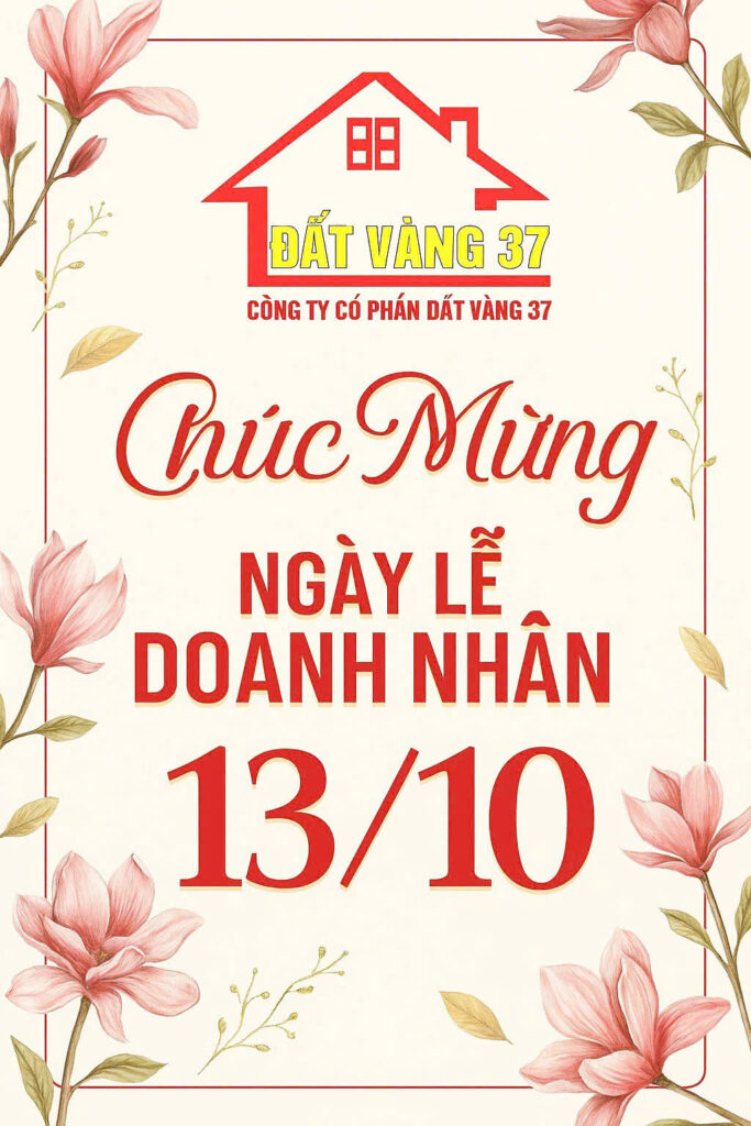 Nhân Ngày Doanh nhân Việt Nam 13/10, Công ty Cổ phần Đất Vàng 37 xin gửi tới Quý Doanh nhân, Quý Đối tác và Khách hàng lời chúc mừng tốt đẹp nhất!